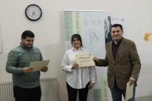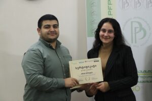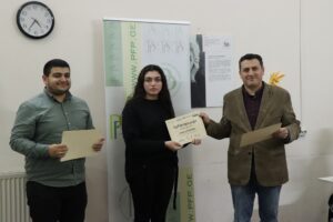 The winning team was identified by a specially invited jury, which included Anton Kelbakian (Chairman of the PFP Board), Nilufer Kurbanova (Teacher, CENN Farmers’ Mobilization and Capacity Development Coordinator); Adil Aliyev (Member of the City Council of Marneuli Municipality), Ariz Dashdemirli (Teacher, Co-Founder of the Institute of New Thought) and Nashir Ordukhanov (Member of CEAC, Project Coordinator). 200 GEL vouchers of Byblus were given to the members of the winning team. In addition, among the participants, the jury also selected the best speaker and he was also awarded a Byblus voucher.